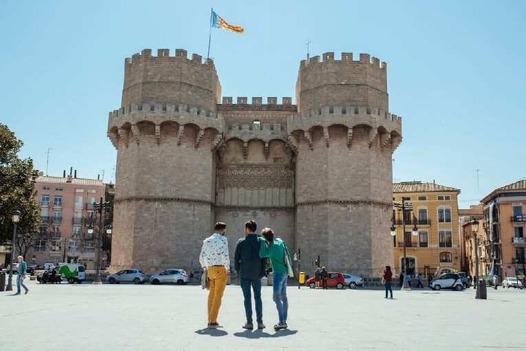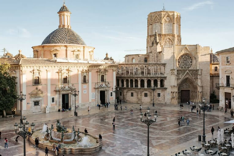 Il tour prosegue con una delle migliori viste panoramiche della città dalle Torres de Serrano o dal Miguelete. Prosegui poi per Plaza de la Virgen, dove potrai visitare la Basilica della Virgen de los Desamparados e la Cattedrale e continua verso Plaza de la Reina.